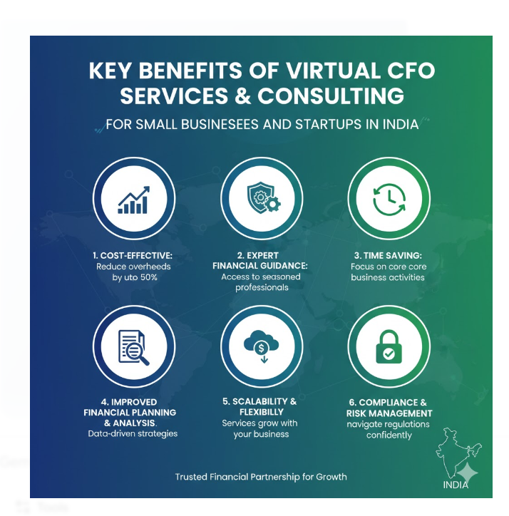 This is where virtual CFO services India have emerged as a game changer. A virtual CFO offers expert financial leadership, analysis, and planning support remotely — delivering the value of an in-house CFO at a fraction of the cost. From managing cash flow and compliance to guiding fundraising and profitability planning, virtual CFOs empower small businesses with enterprise-grade financial intelligence.